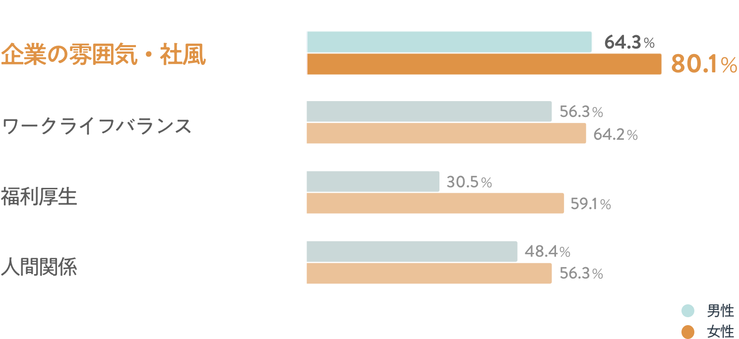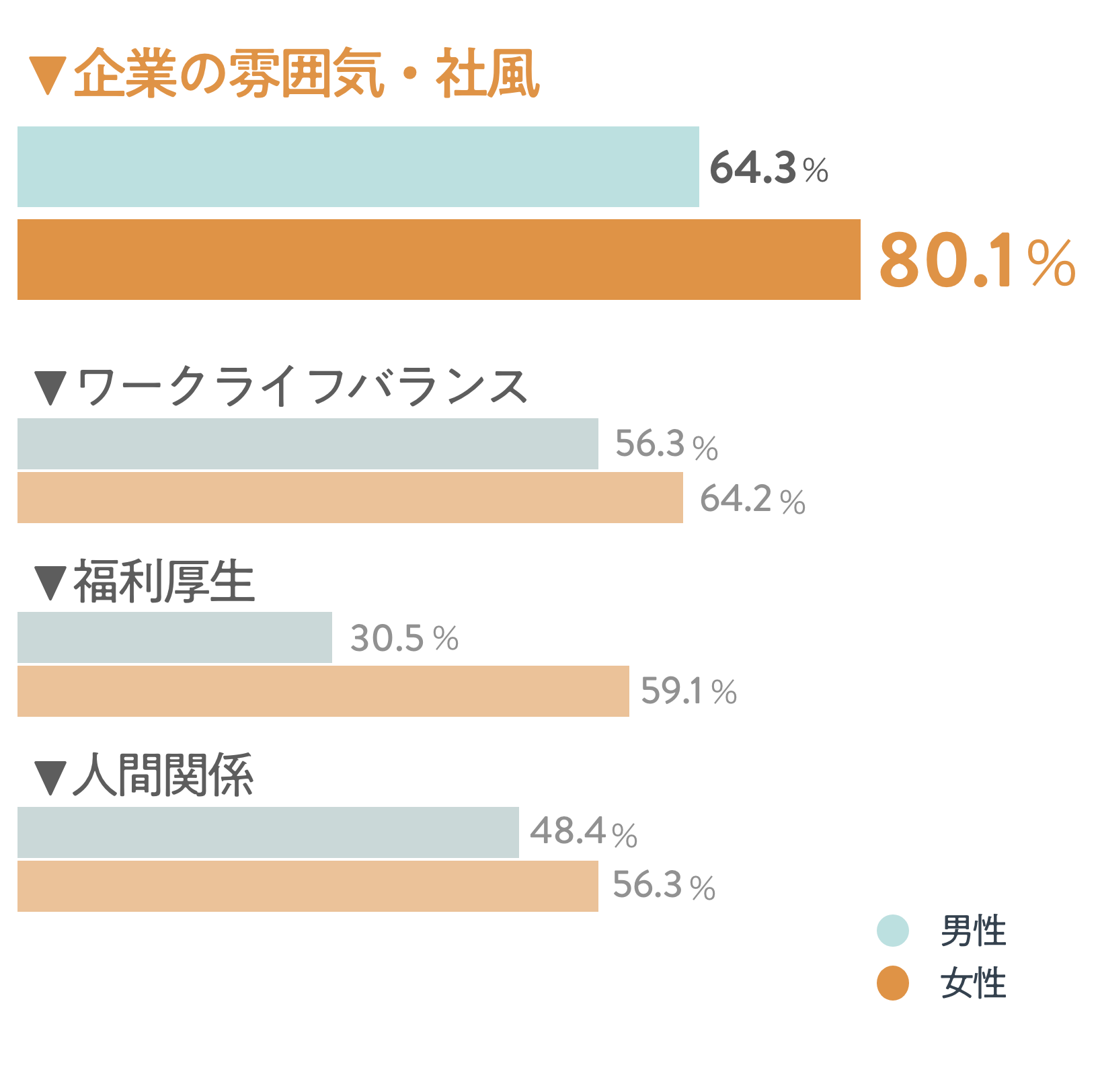 女性が企業選びで特に重視しているのは企業の雰囲気や社風!